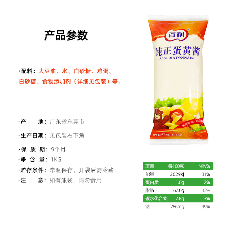 Baili pure mayonnaise 1kg package whole box of fruit and vegetable salad hamburger bread western food barbecue sandwich
