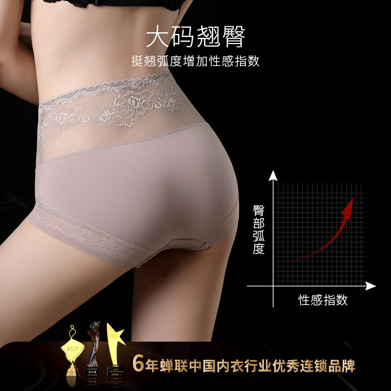 Lace large size high waist panties female fat mm 200 jins belly lift hips pure cotton crotch antibacterial ladies close belly thin