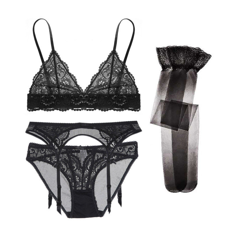 Sexy bras small bras gather large steel-free lace lingerie four-piece set French bra summer thin