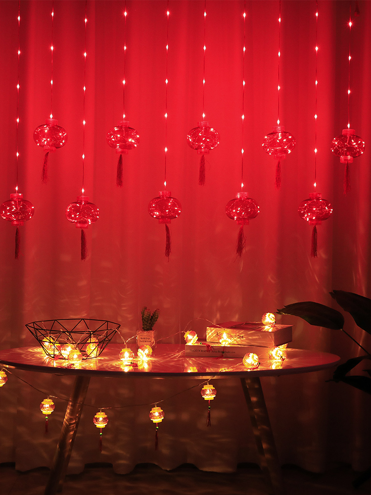 New Year's Day highlight luminous red lantern decoration festival wedding living room balcony scene home curtain lights
