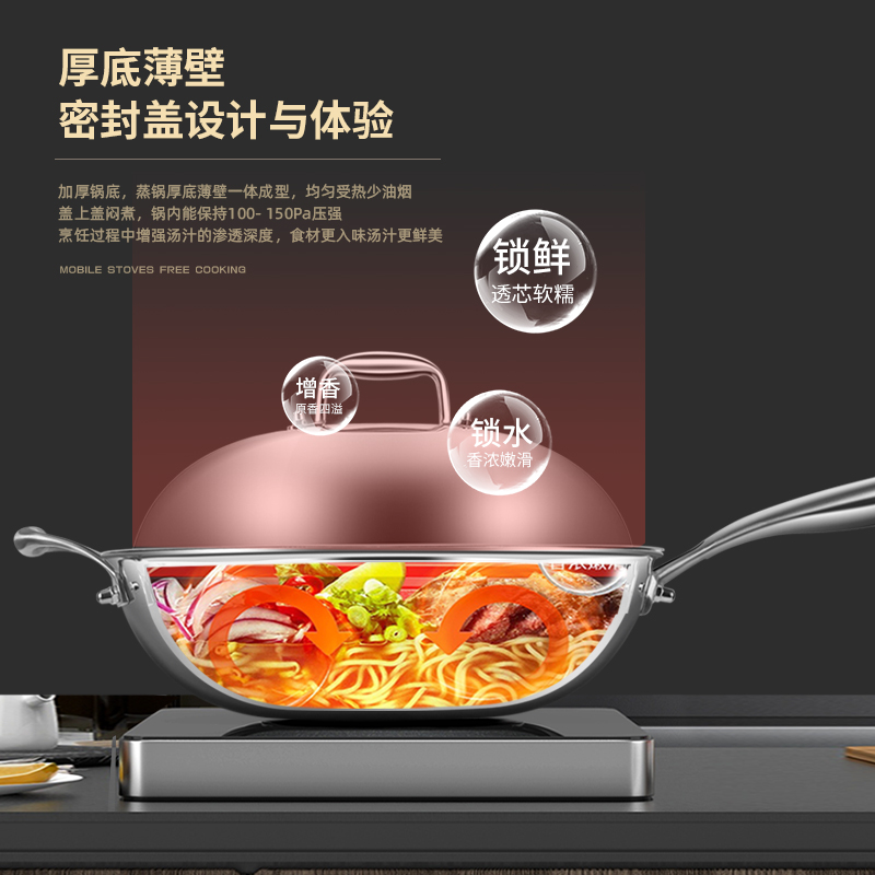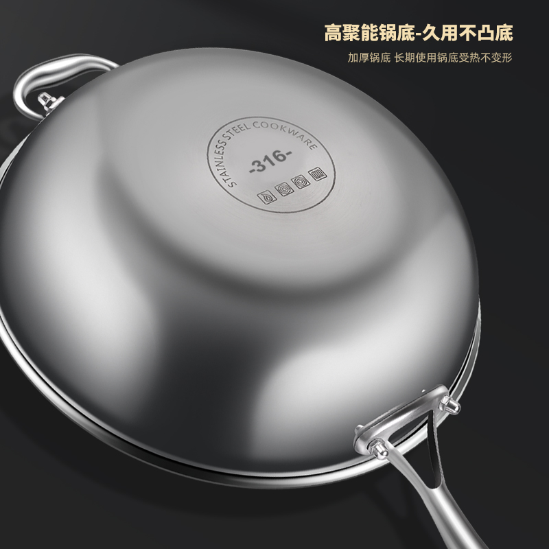 316 stainless steel frying pan uncoated frying pan household round bottom non-stick pan gas stove induction cooker special pot