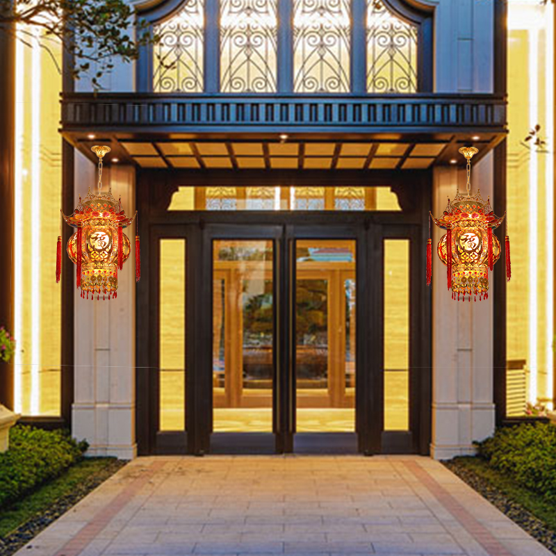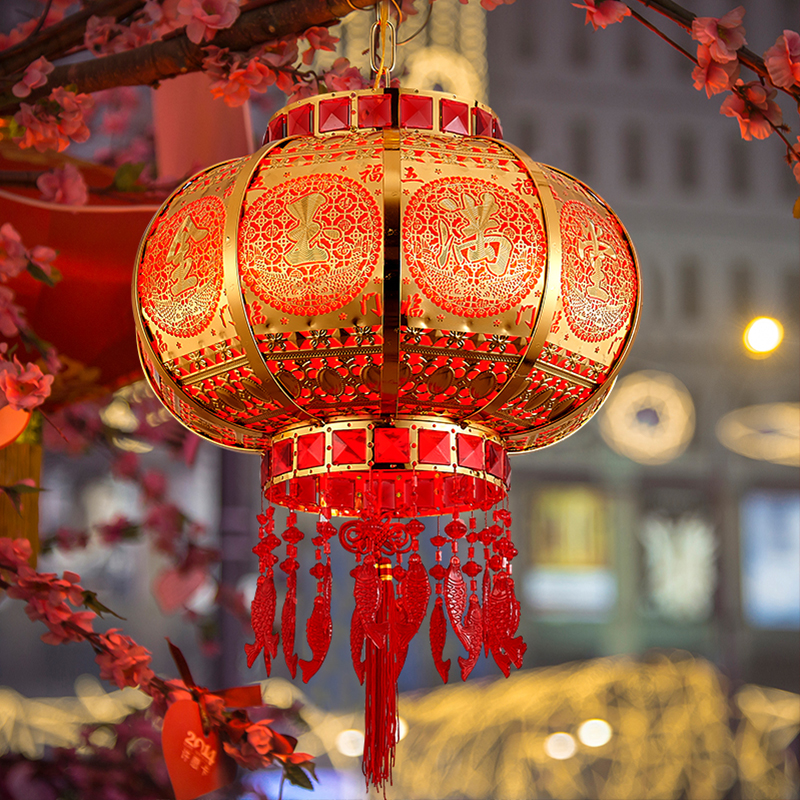 Chinese-style festive new balcony gate octagonal wrought iron electric led rotating household New Year red lantern chandelier
