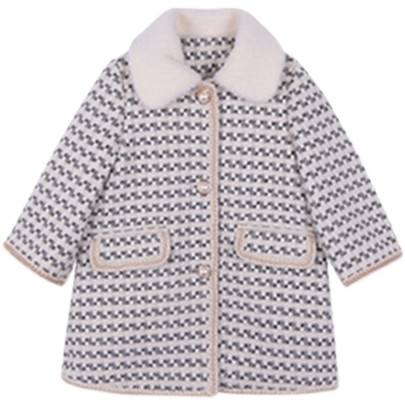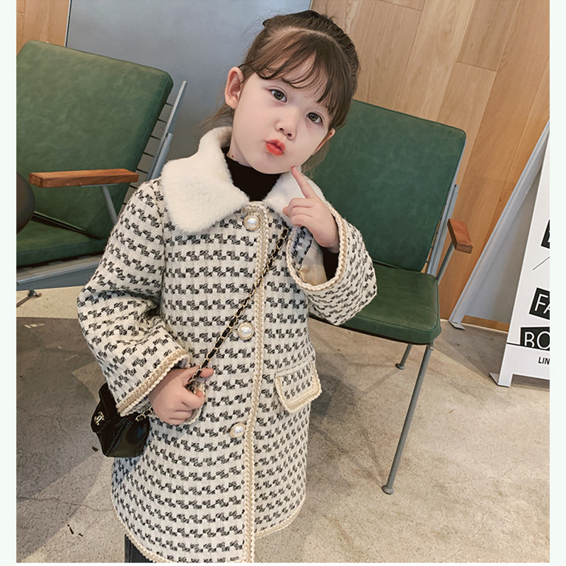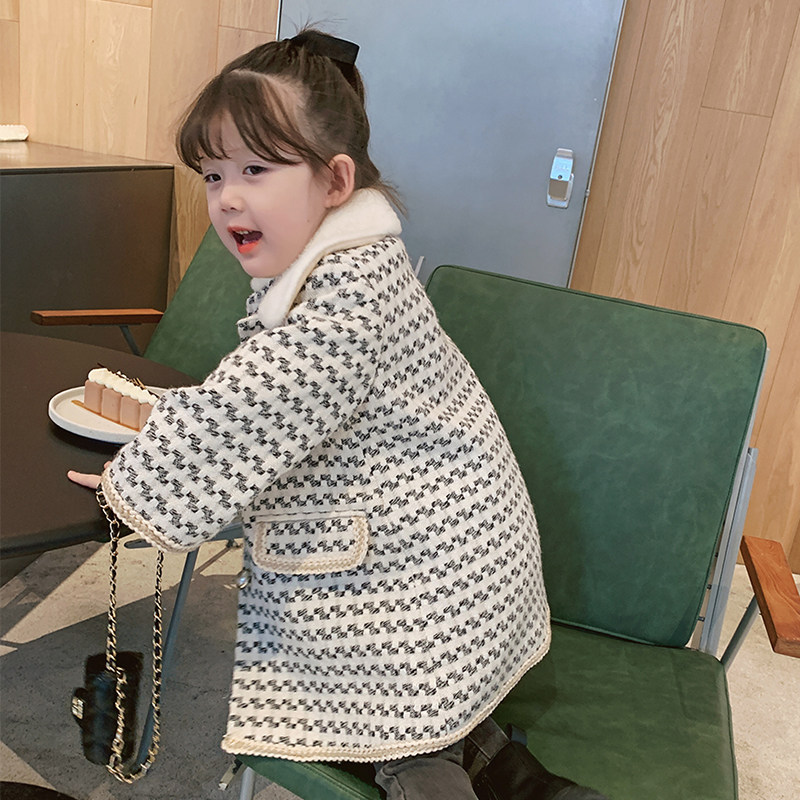 Girls winter thickened mid-length woolen coat new Korean version girl children's cotton houndstooth plaid coat