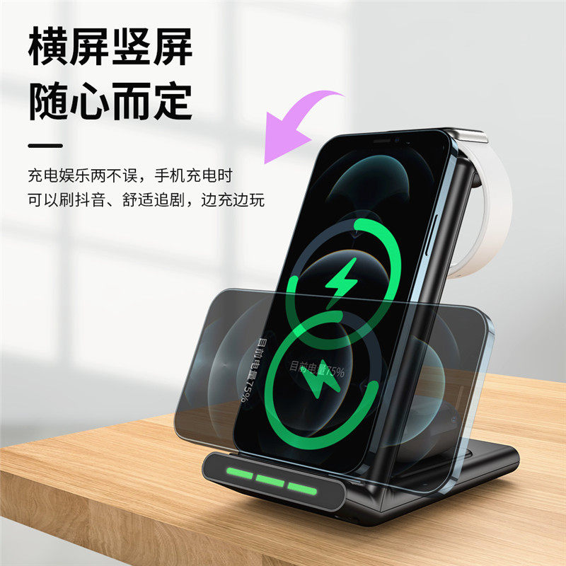 Three-in-one wireless charger suitable for 12 Apple iphone13 Huawei Samsung Xiaomi phones Universal iwatch7 Watches Airpods Headphones Special Multifunction Fast-Charge Bracket