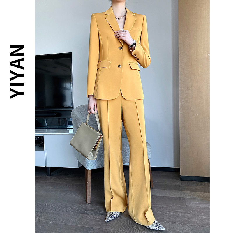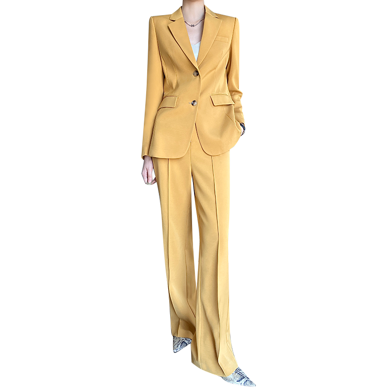 Yellow suit suit female spring and autumn professional ladies high-end British style fashion temperament goddess fan Korean version suit winter