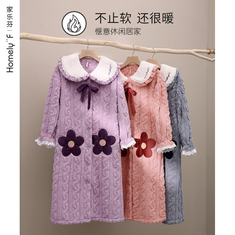 Sleeping robe ladies sleepwear bathrobe, autumn and winter style winter long version of flannel thicken plus suede coral suede home for winter