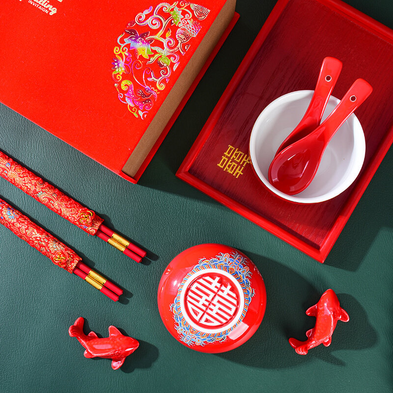 A pair of Koi tea cups A pair of Koi tea cups A pair of small square plate Koi bowls and chopsticks spoons A pair of chopsticks racks Koi bowls and chopsticks spoons a pair of chopsticks racks Small square plate Koi to send 10-piece set (seal cup) for Koi to send