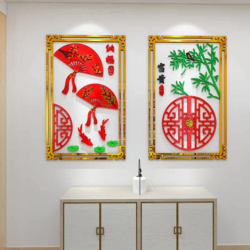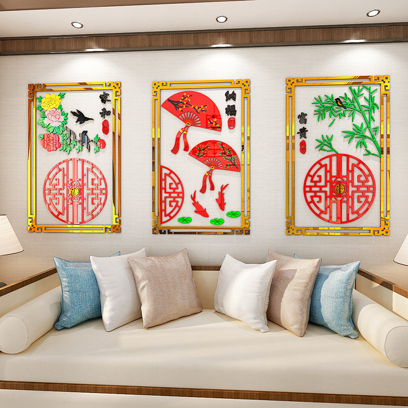 Fu fan word living room sofa TV background wall decoration sticker oversized 3D three-dimensional wall sticker Chinese style wall painting