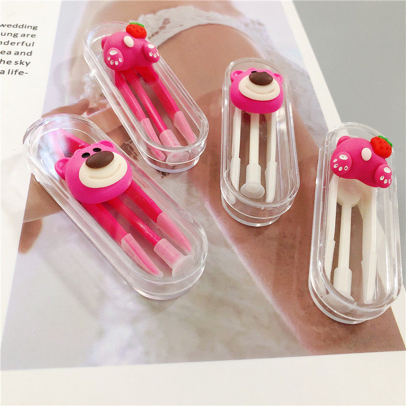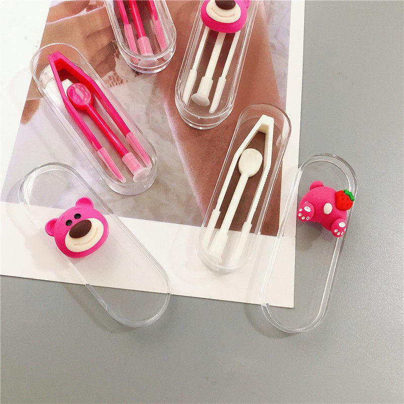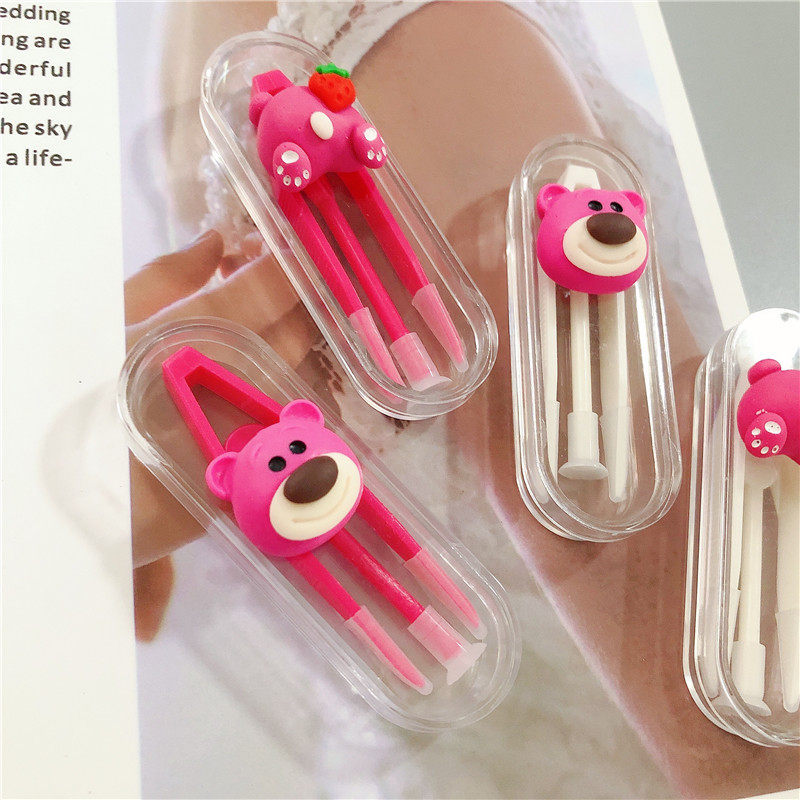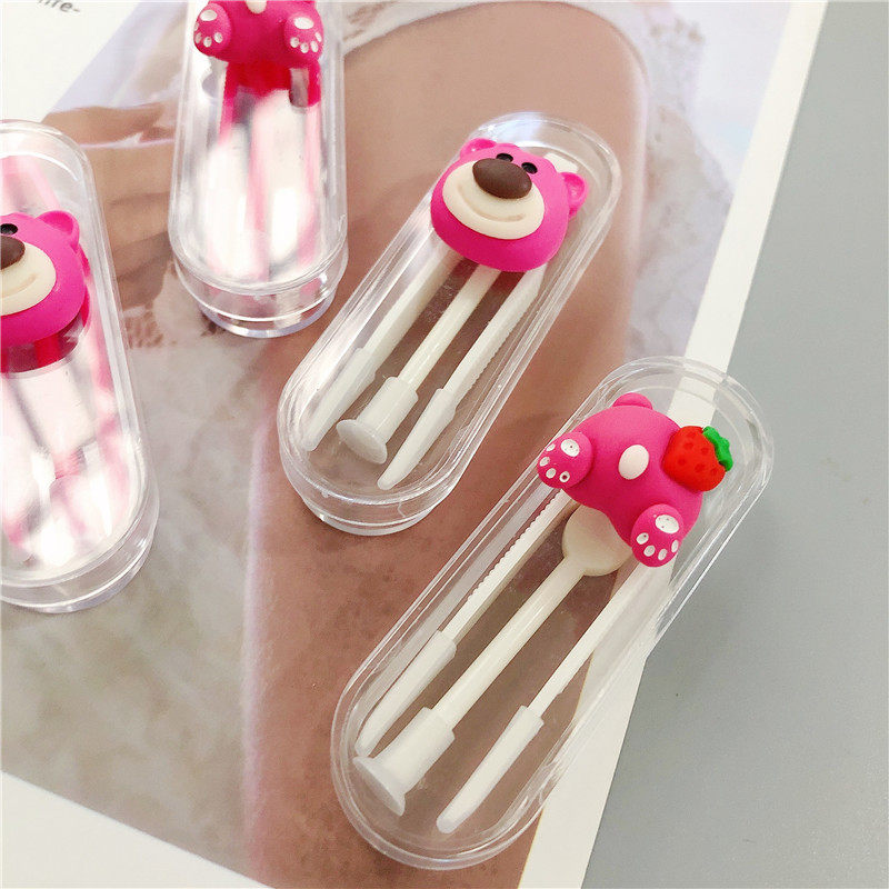 Cute Strawberry Bear Wearing Contact Lenses Clip Tweezers Portable Color Contact Wearer Suction Stick Suction Cup Storage Box Accessories