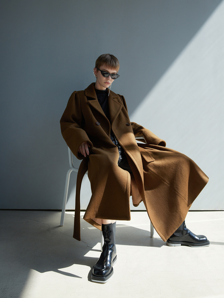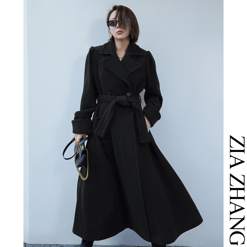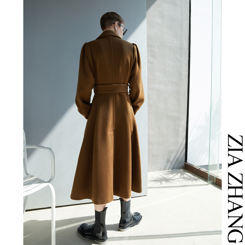 Z Boss Comeback Fold Sleeves Suit Large Collar Wool Fabric Big Clothes X Type Lace Big Swing Wool Coat Woman