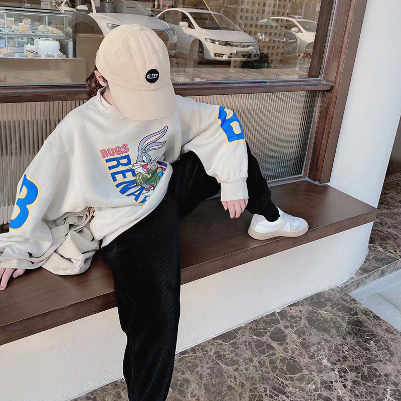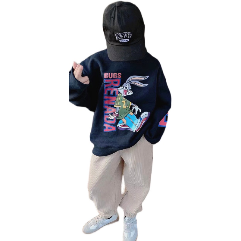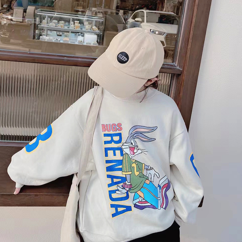 South Korean children's clothing children Cavet sweatshirt winter new 2021 male and female child Rabbit octocolatan printed round collar sleeve head long sleeve