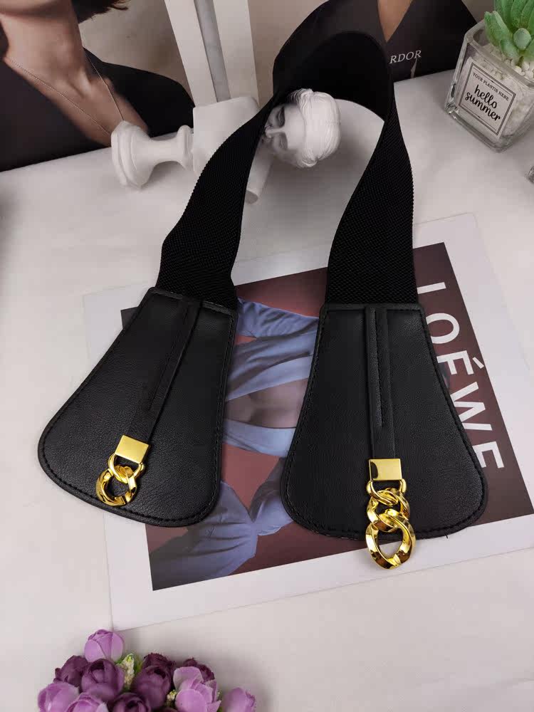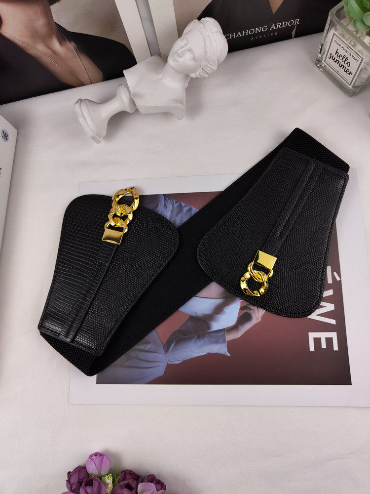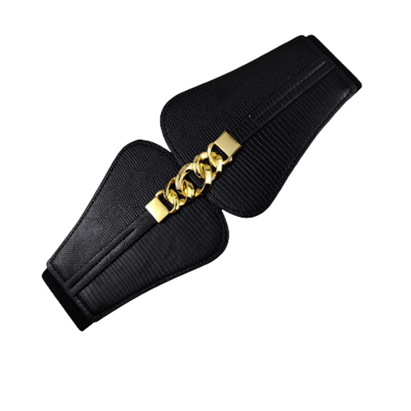 Crocodile textured black gold chain buckle double-sector waist seal pure black gold chain buckle double-sector waist seal