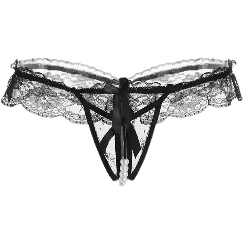 Evil Girl Pearls Massage Tints Pants Sexy Lace Clairvoyant briefs open gear free from seduction tpants-Taobao