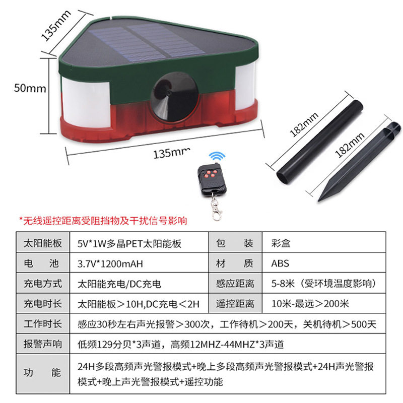 360-degree animal repeller outdoor solar mouse repellent flashing to frighten cats and dogs to frighten wild boars and weasels