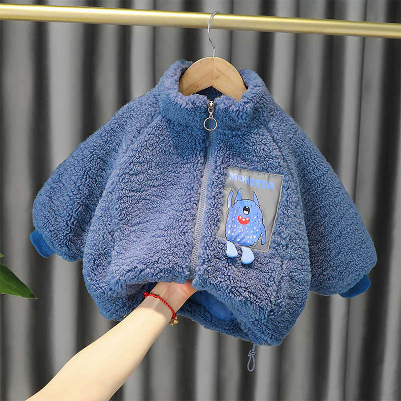 Boy coat plus suede 2022 autumn winter new baby lamb suede girls winter clothing thick foreign children tide blouses