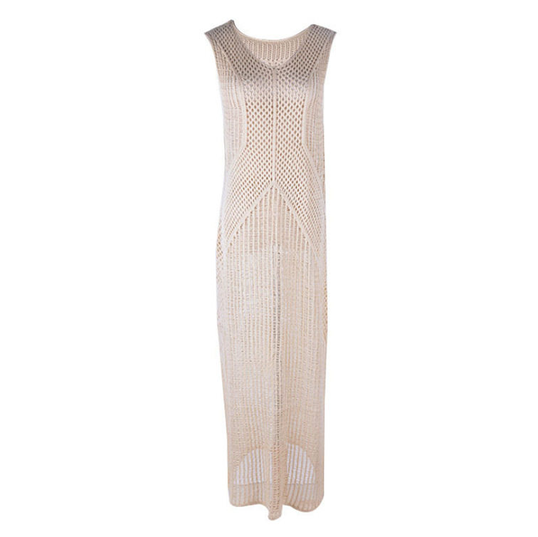 European and American seaside holiday long skirt Hollowed-out Knitwear Cardiovert Sexy Swimsuit Hood Cardiovert Beach Skirt Long version of women