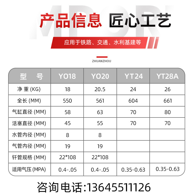 Nanjing Open Mountain Chisel Rock Machine YT28 Wind Drill YT24 Wind Cannon YO20 Handheld 18 Pneumatic Punching Drill Bit Rod Air Leg