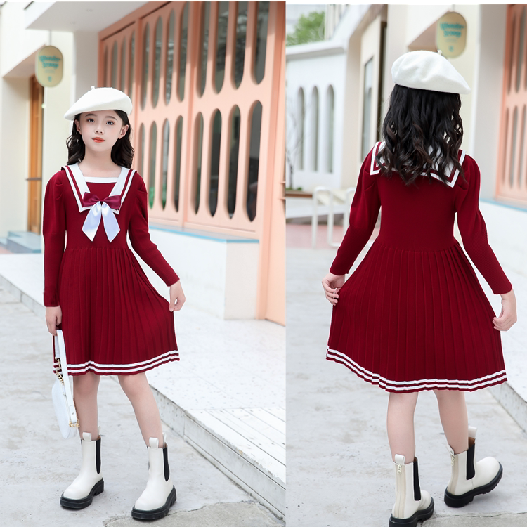 Girls dress autumn and winter Western style children's princess skirt 2021 new big boy girl New Year sweater skirt autumn