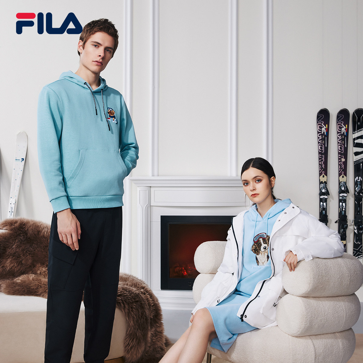(Parenting) FILAFila children's clothing sports even hat sportswear winter new sets of hooded blouses