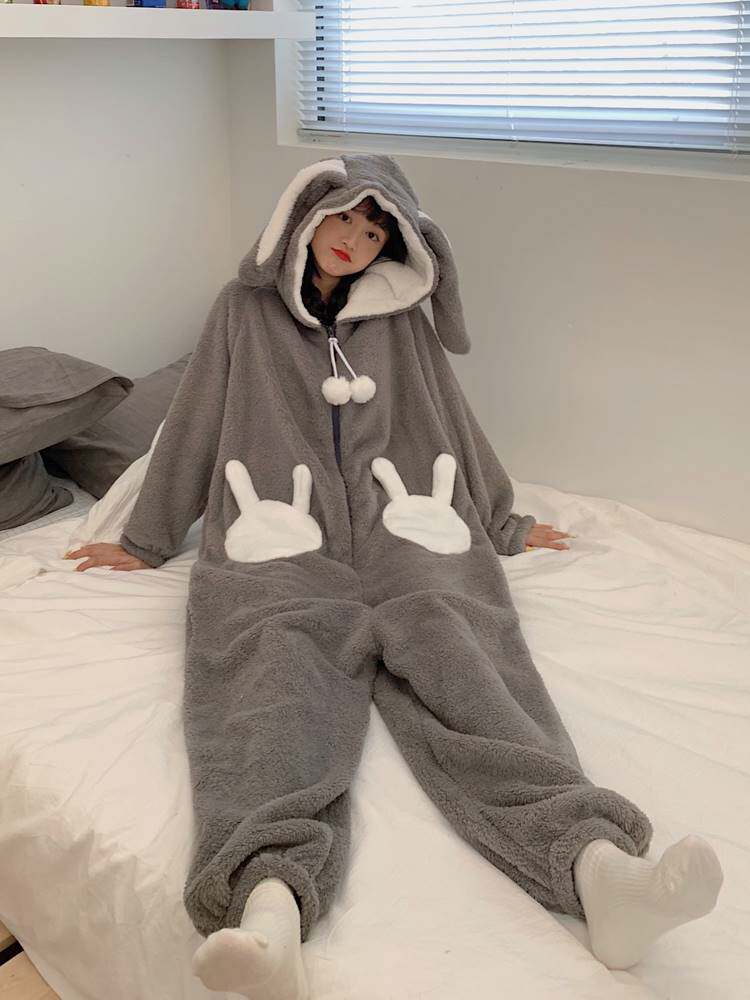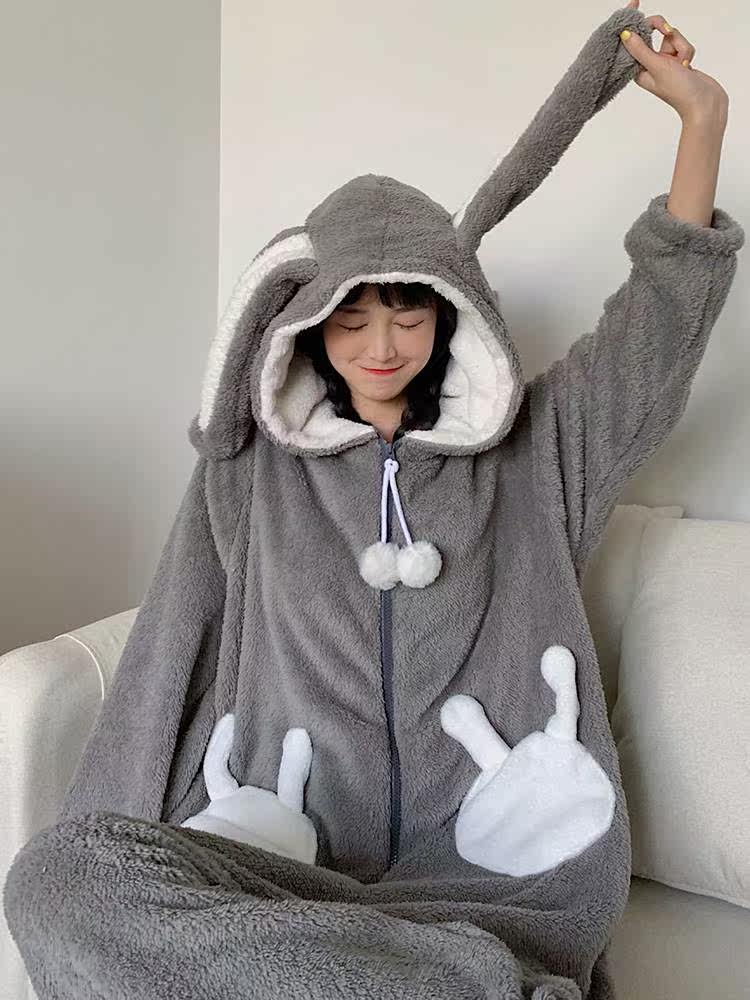 Lovely and irresistible ~ sultry winter thickened coral fleece cartoon one-piece pajamas women's sweet nightgown
