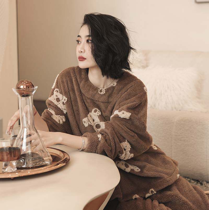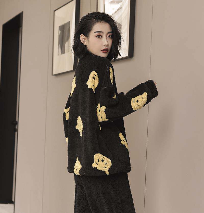 Cartoon Bear~BI designer pyjamas female fall and winter coral velvet thickening net red can wear home suit
