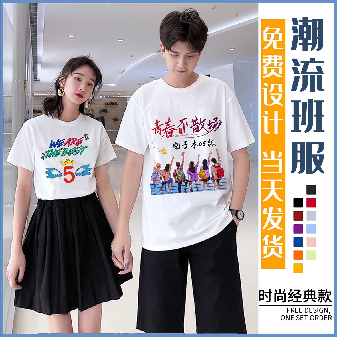 Summer Graduation Class Dress Short Sleeve T-shirt Custom Kindergarten Classmates Party Costume High-end Pure Cotton Advertising Culture Shirts