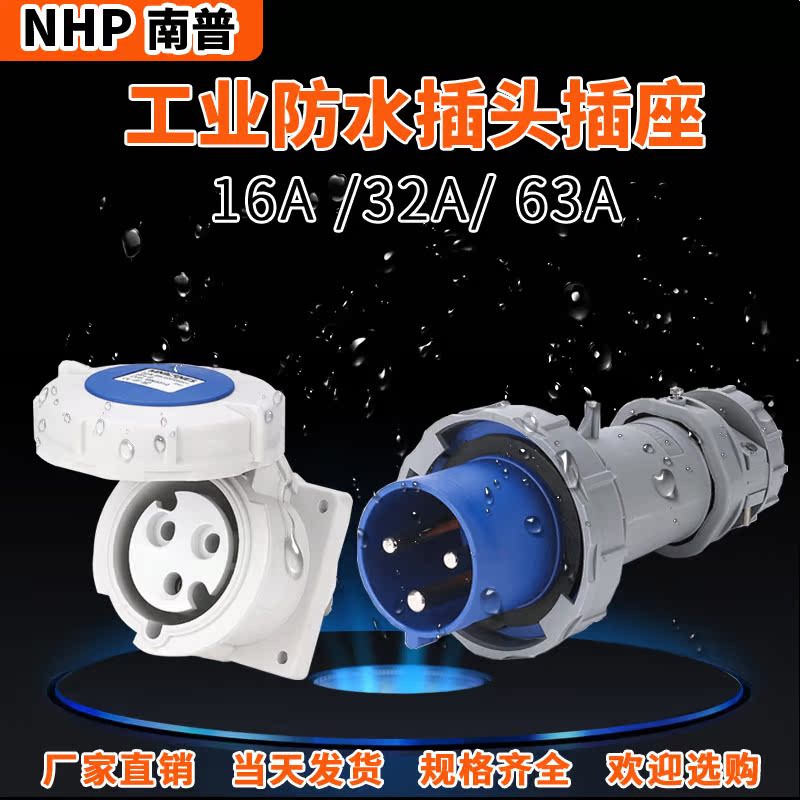 Industrial aviation plug socket connector 3 4 5 core 16A 32A 63A indoor and outdoor waterproof rating IP67