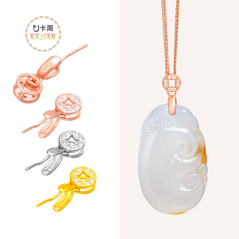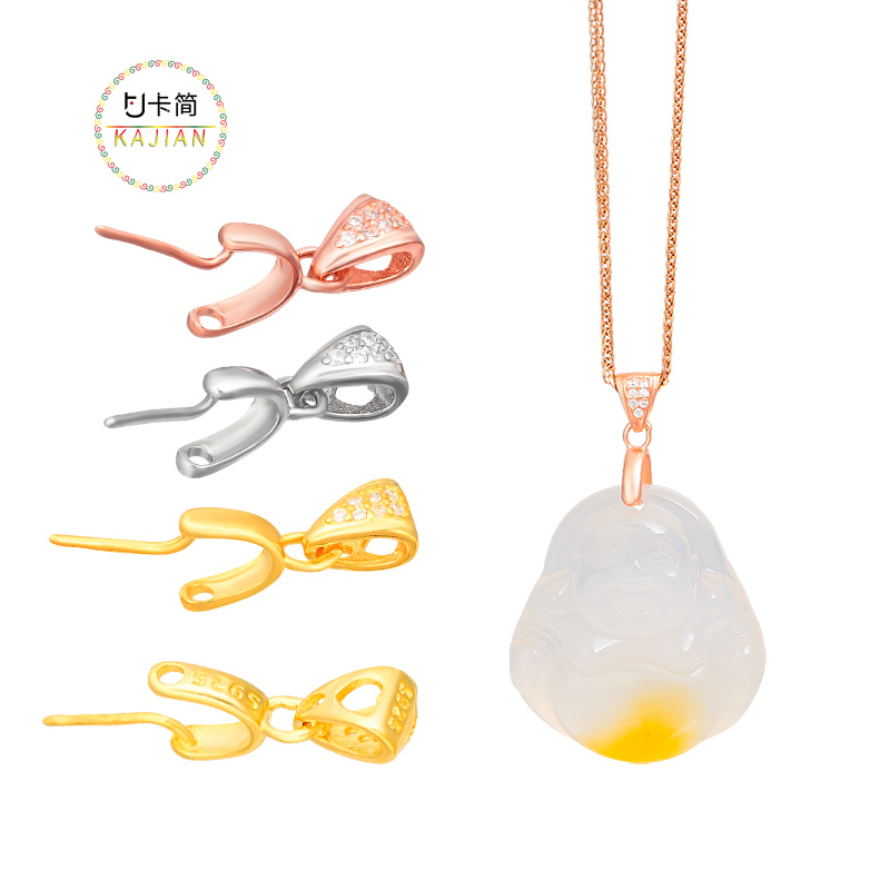 Kajian S925 silver pendant belt head jade pendant buckle button diy jade pendant buckle silver belt head necklace buckle jade Buddha buckle