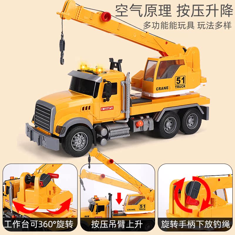 Oversized crane toys (pump up and down) oversized fuel tanker (pump up water) oversized sanitation truck (pump up and down) oversized dump truck (pump up and down) oversized mixer truck (can be discharged)