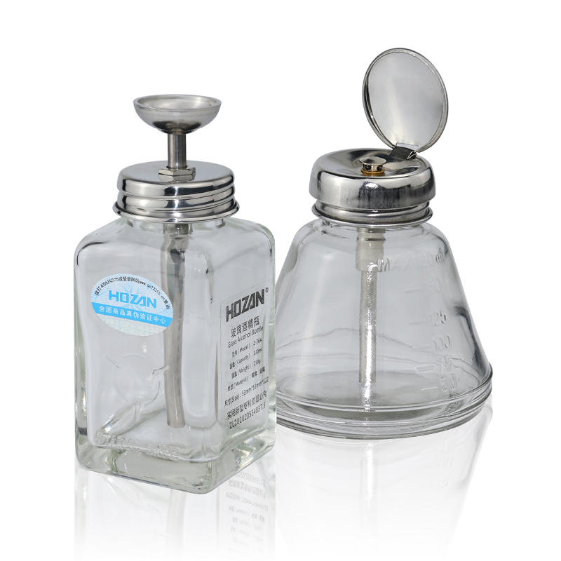 Thickened glass alcohol bottle press type anti-corrosion washing plate water bottle mobile phone maintenance press bottle cap automatic water outlet