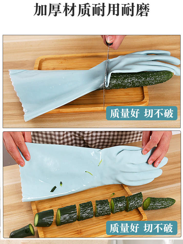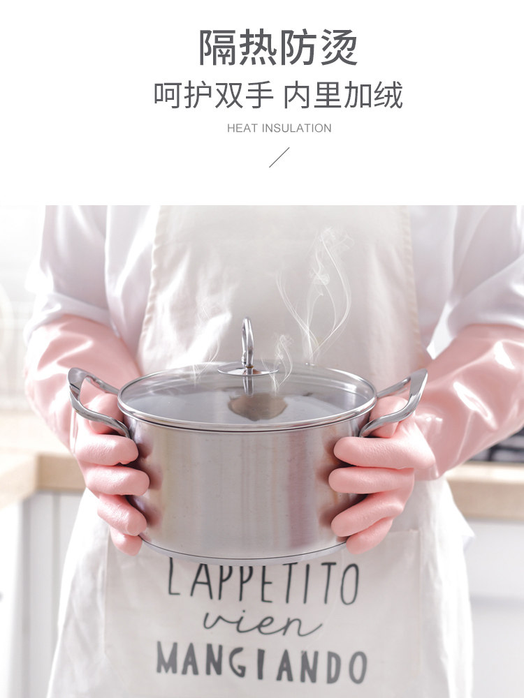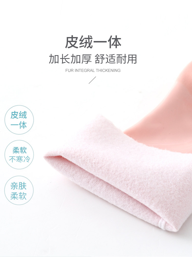 Add velvet thickened gloves for women laundry, dishwashing clothes for winter housework kitchen rubber integrated velvet plus cotton durable waterproof