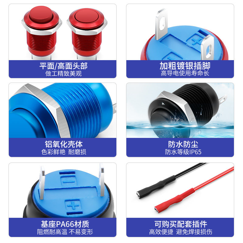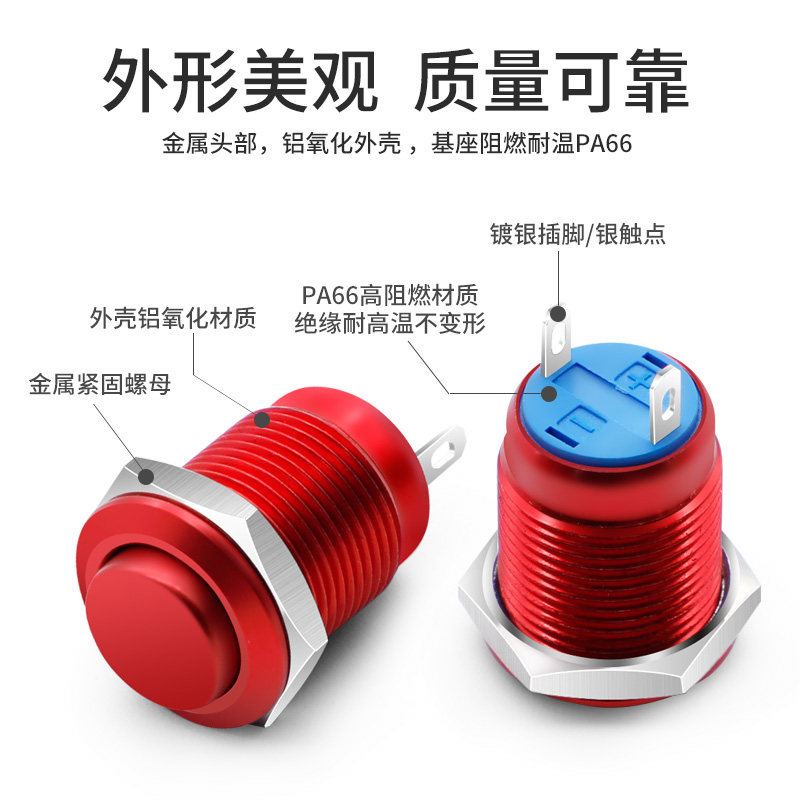12mm aluminum oxide reset switch metal button switch waterproof round miniature power switch 220v