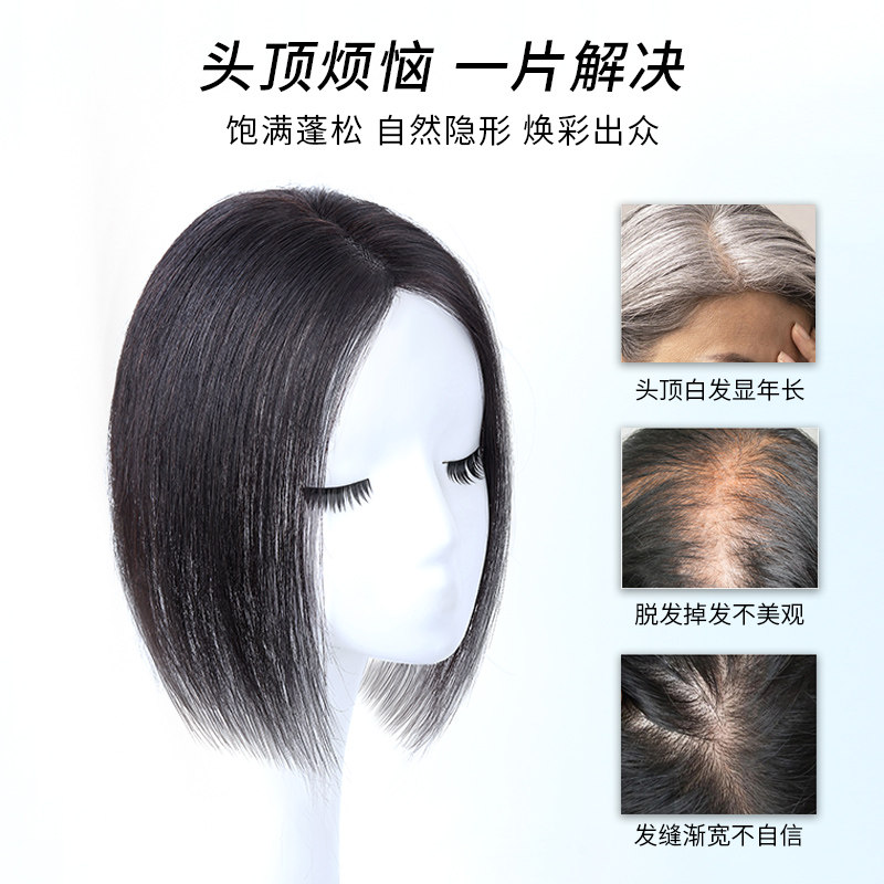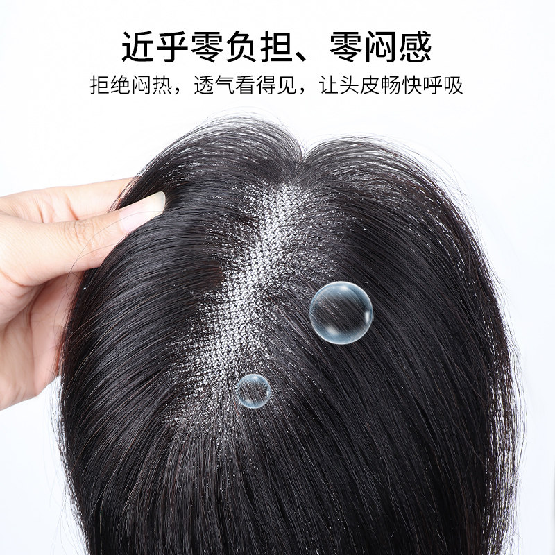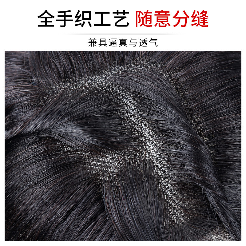 Real hair full hand-woven Swiss net wig piece female top cover white hair increase volume fluffy hair seam cover replacement piece female