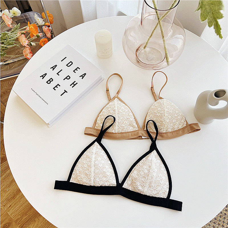 Temperament Nude Sensation Bra ~ Style Light Lavish Solid Lace Adolescent Girl Single Button No Steel Ring Comfort Bra Popmilk Small Underwear