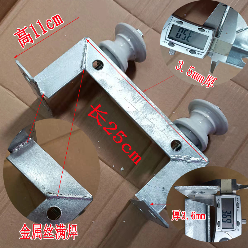 Hot-dip galvanized wire outdoor 2-wire curved street code I-shaped gantry frame porcelain bottle insulator outdoor wall support bracket