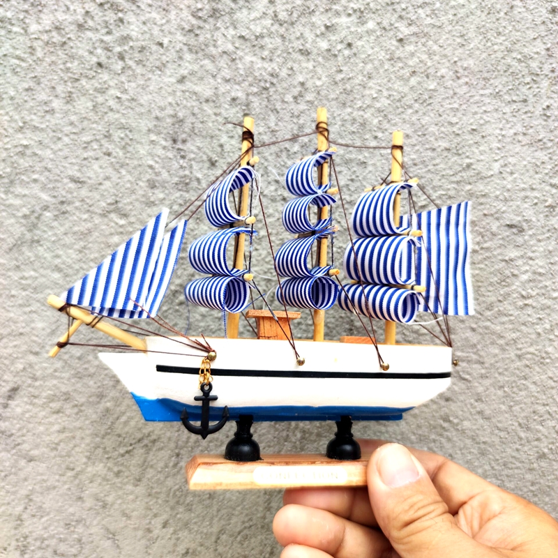 Mediterranean pink wooden sailing model sailing smoothly home room decoration piece bar setting