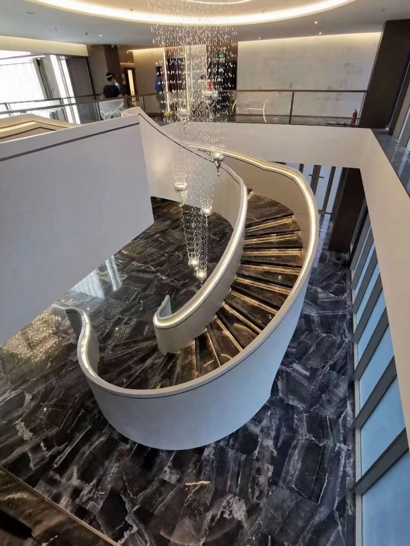 Rotating steel plate arc stairhousesSteel plate stairs holistic steel plate staircase double deck steel plate staircase network red stairs