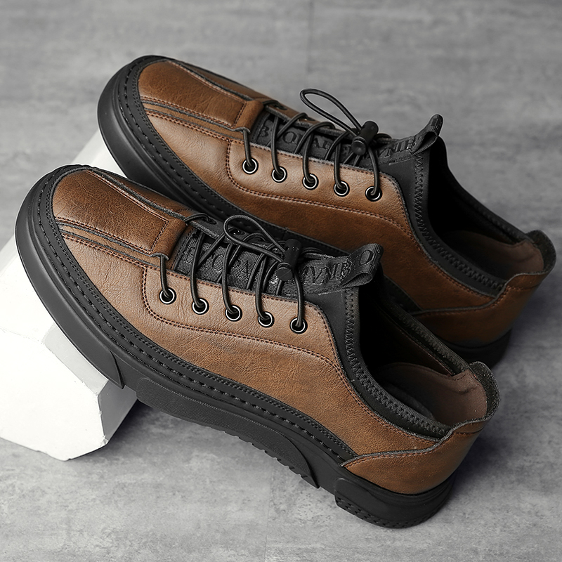 Woodpecker men's shoes leather shoes men's Korean version of leather casual shoes men's trend all-match retro sneakers men's plus velvet cotton shoes