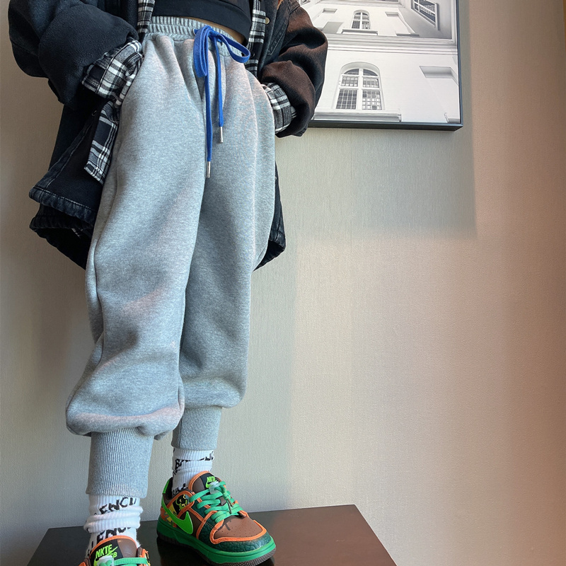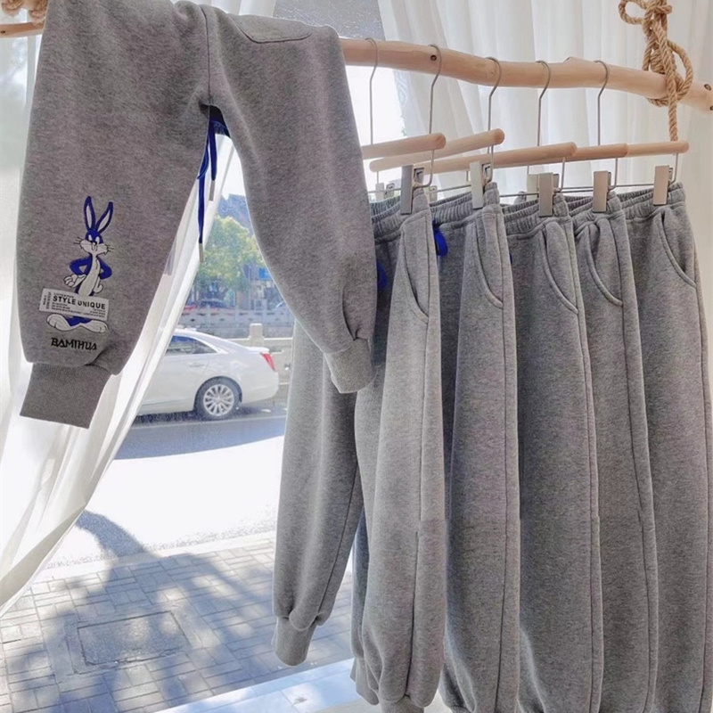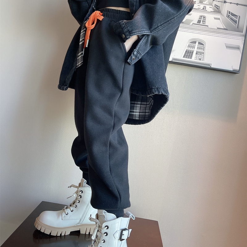 Children plus suede pants 2021 Winter male and female Han version Embroidery stars the same style Warm Sports Pants Casual Pants