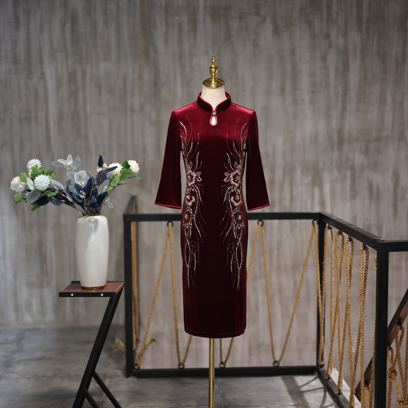 Mulan wedding 2022 Spring new little baby mama wedding gown gold velvet noble drop collar qipao