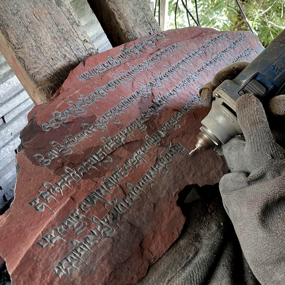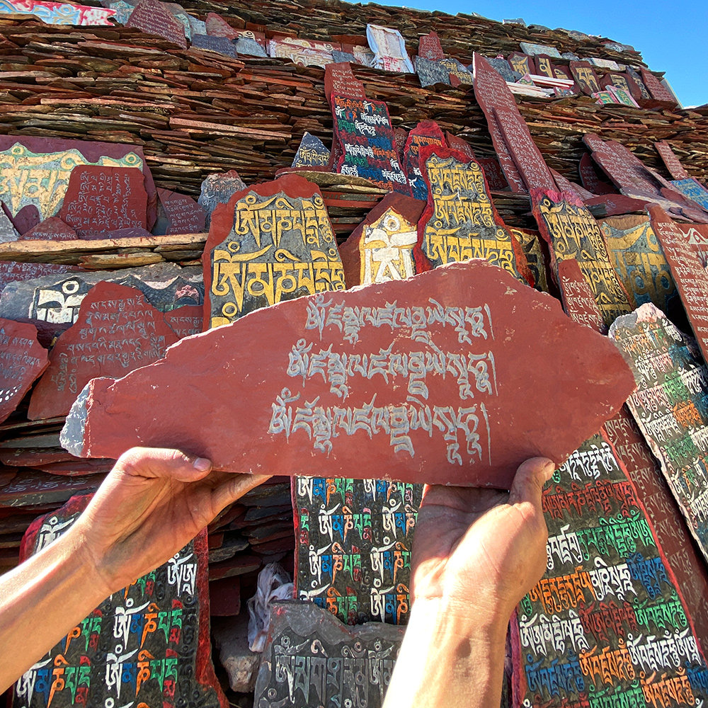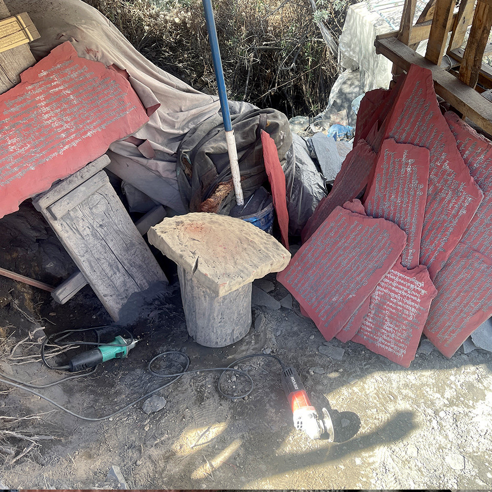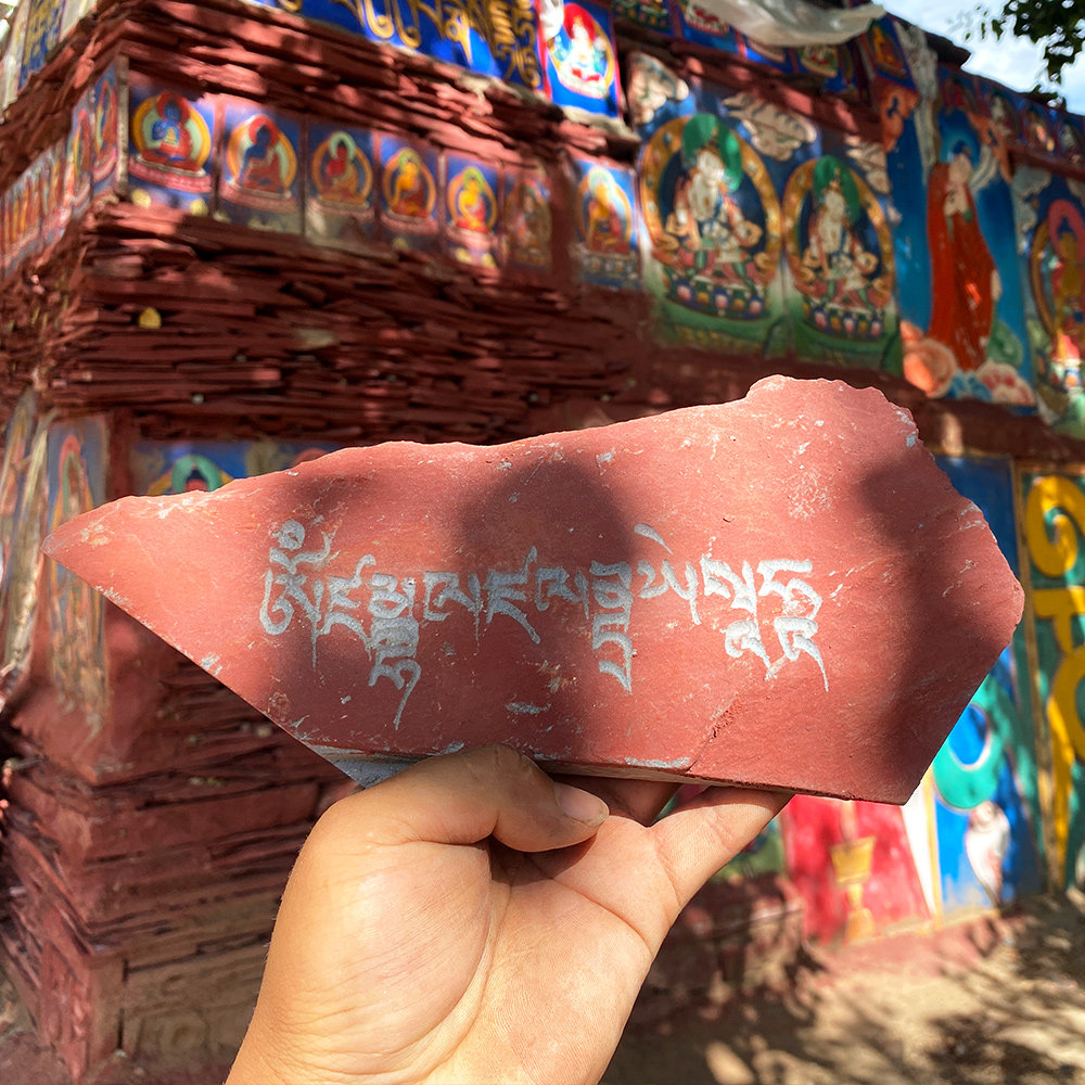 Huang Chai - Shi curse Mani stone carved in Tibet traditional hand carved stone and placed Mani heap