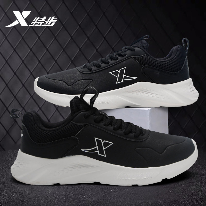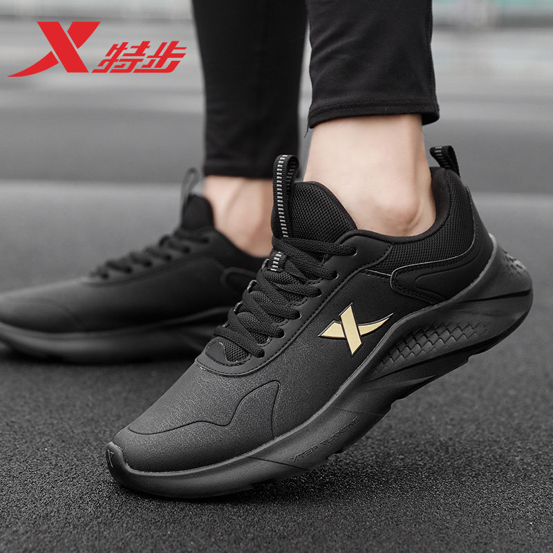 Xtep men's shoes running shoes summer 2022 new official black leather waterproof all-match student low-top sneakers men