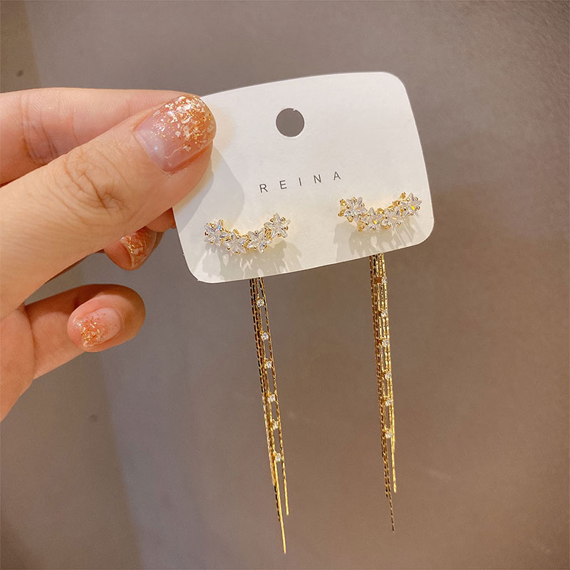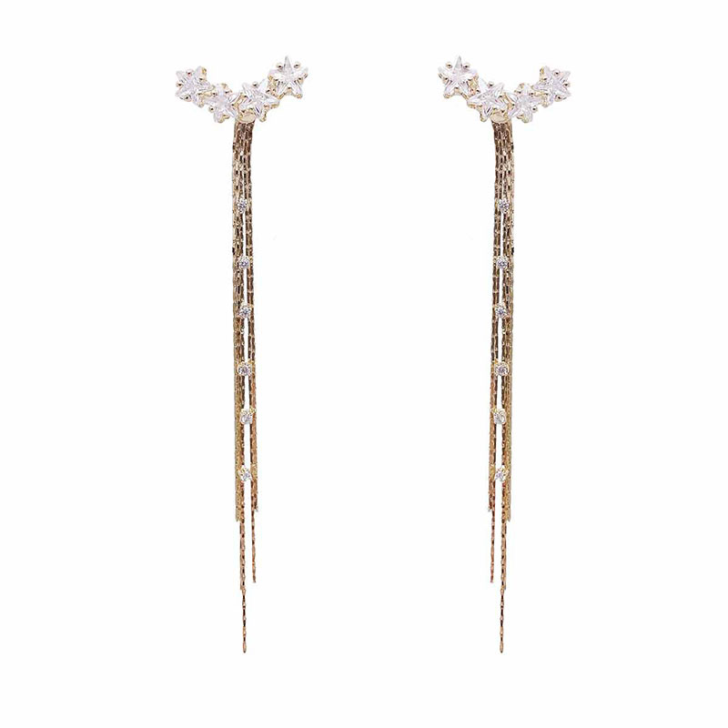 Star tassel earrings temperament long high-end atmosphere female design sense 2021 new trendy light luxury high-end ear needles