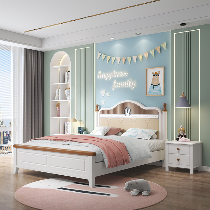 Solid wood single bed MH-1605 solid wood single bed head cabinet * 1 solid wood single bed head cabinet * 2 solid wood single bed protective ridge spring mattress solid wood single bed latex spring mattress solid wood
