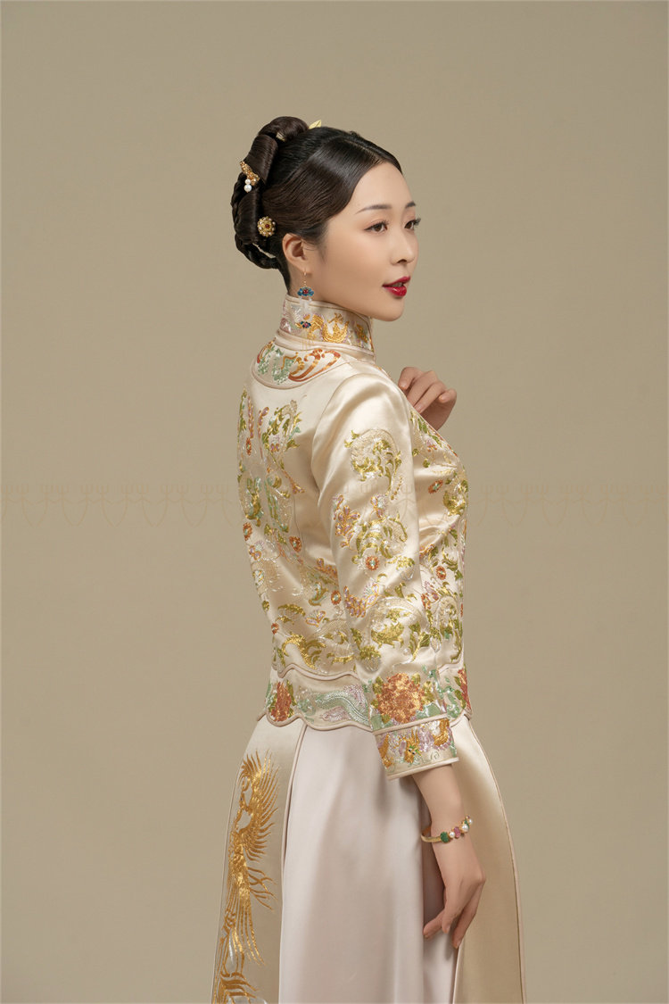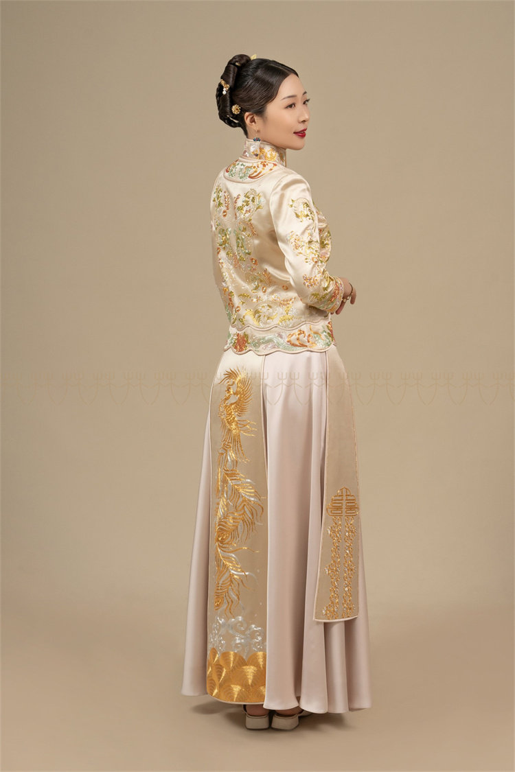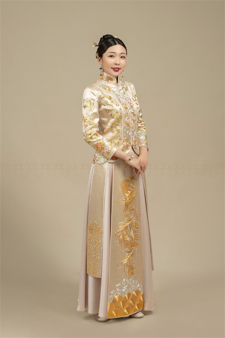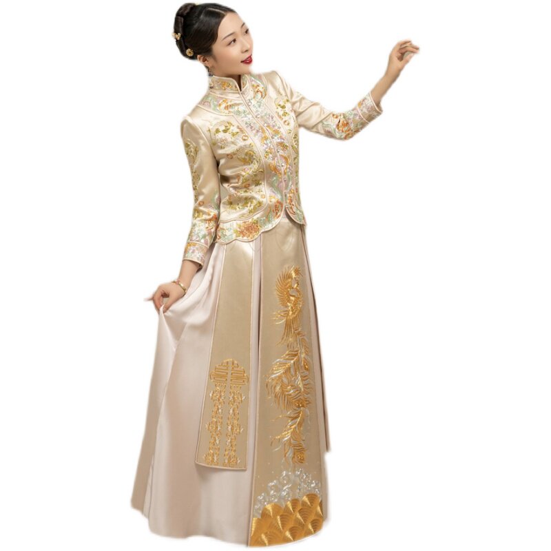 Huafen wedding dress Beijing store "champagne phoenix flower" original dragon and phoenix hanging Chinese modified dress toast clothing