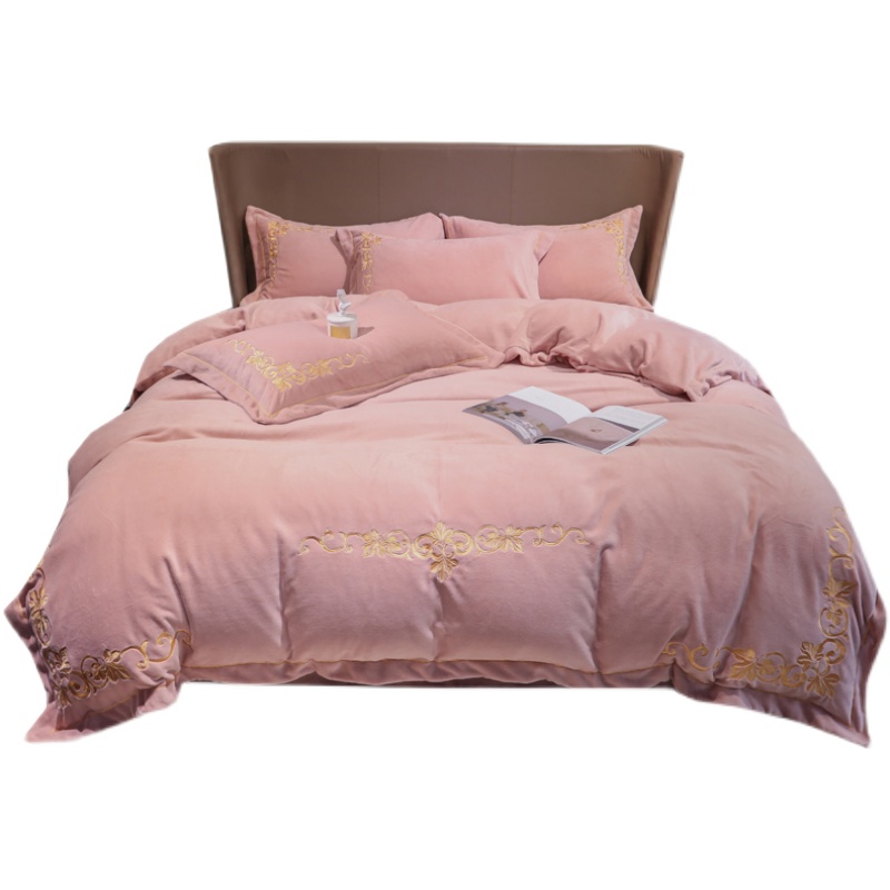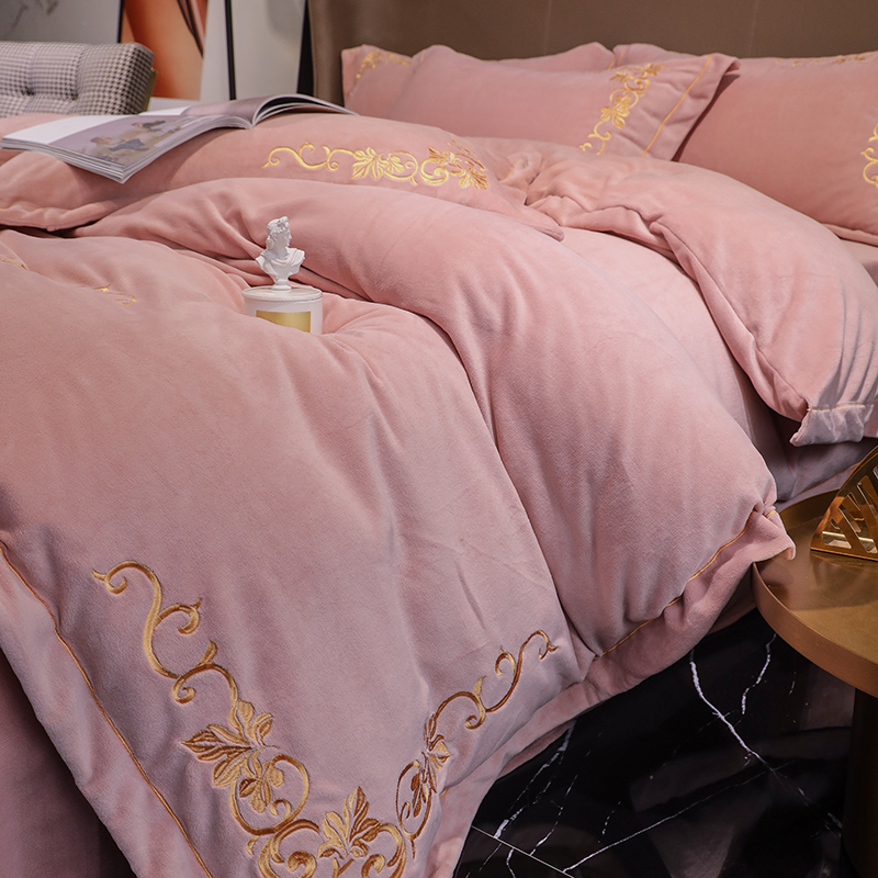 Upscale European-style milk suede embroidered four pieces of winter thickened double-sided coral suede gushed bed linen flannel quilt cover
