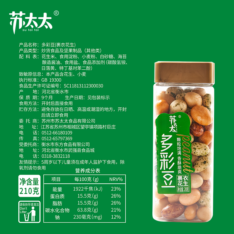 Mrs. Su Colorful Peanut 210g canned net red 80 back nostalgic casual snacks Colorful Bean Peanut rice Japanese beans