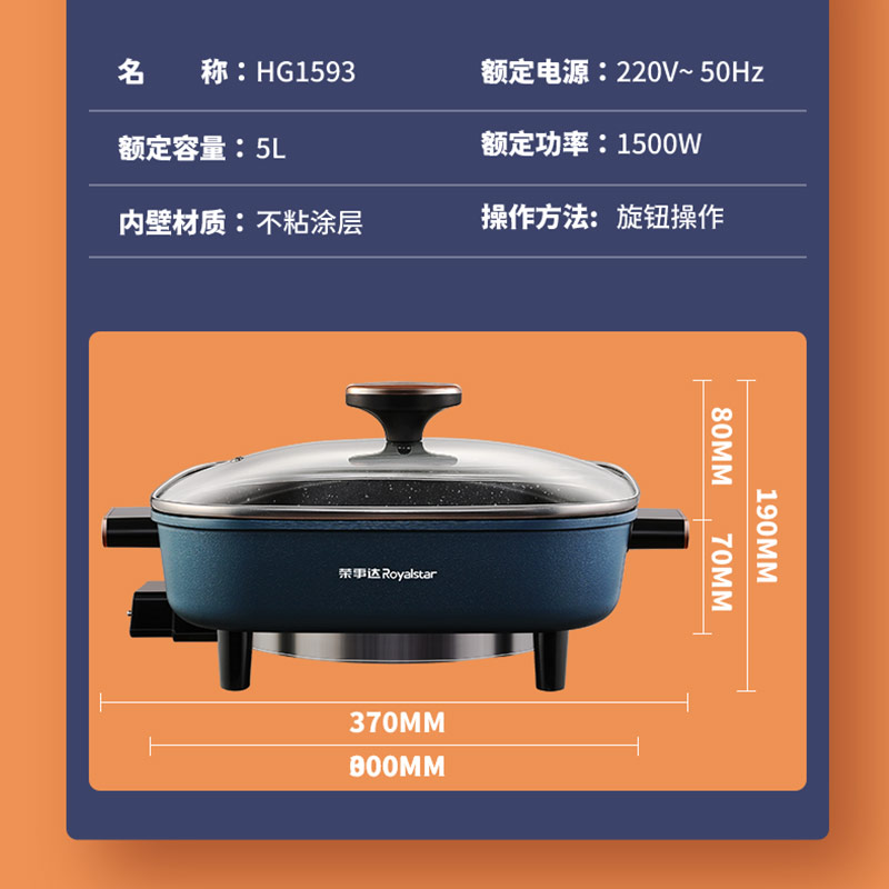 Royalstar Rong matters Da HG1593 Electric hot pot Home Multi-functional electric heat frying pan Dormitory Stir-fry electric hot pot