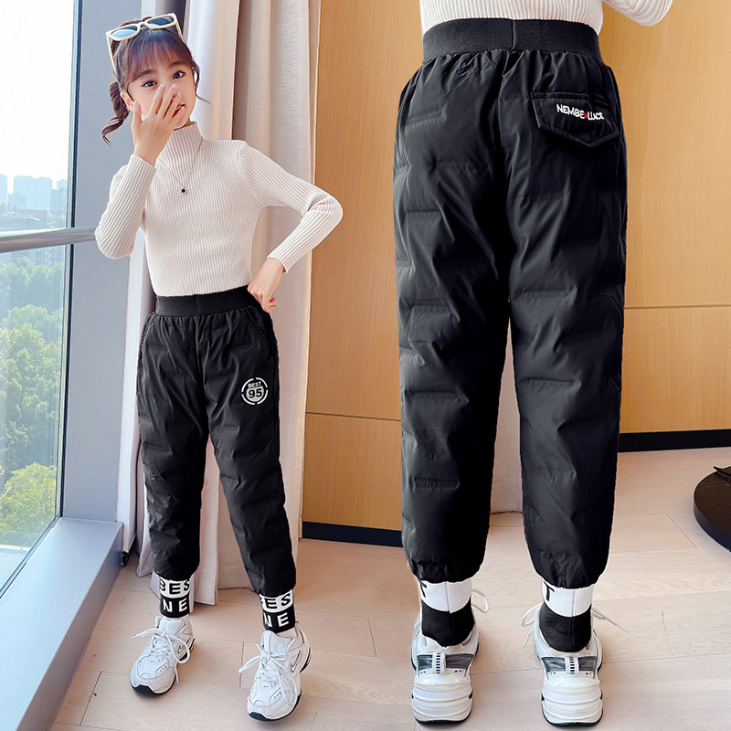 Girls in downcast cotton pants in autumn winter clothes for large children's trousers plus thickening children's leisure exercise outer wearing pants