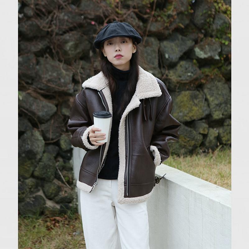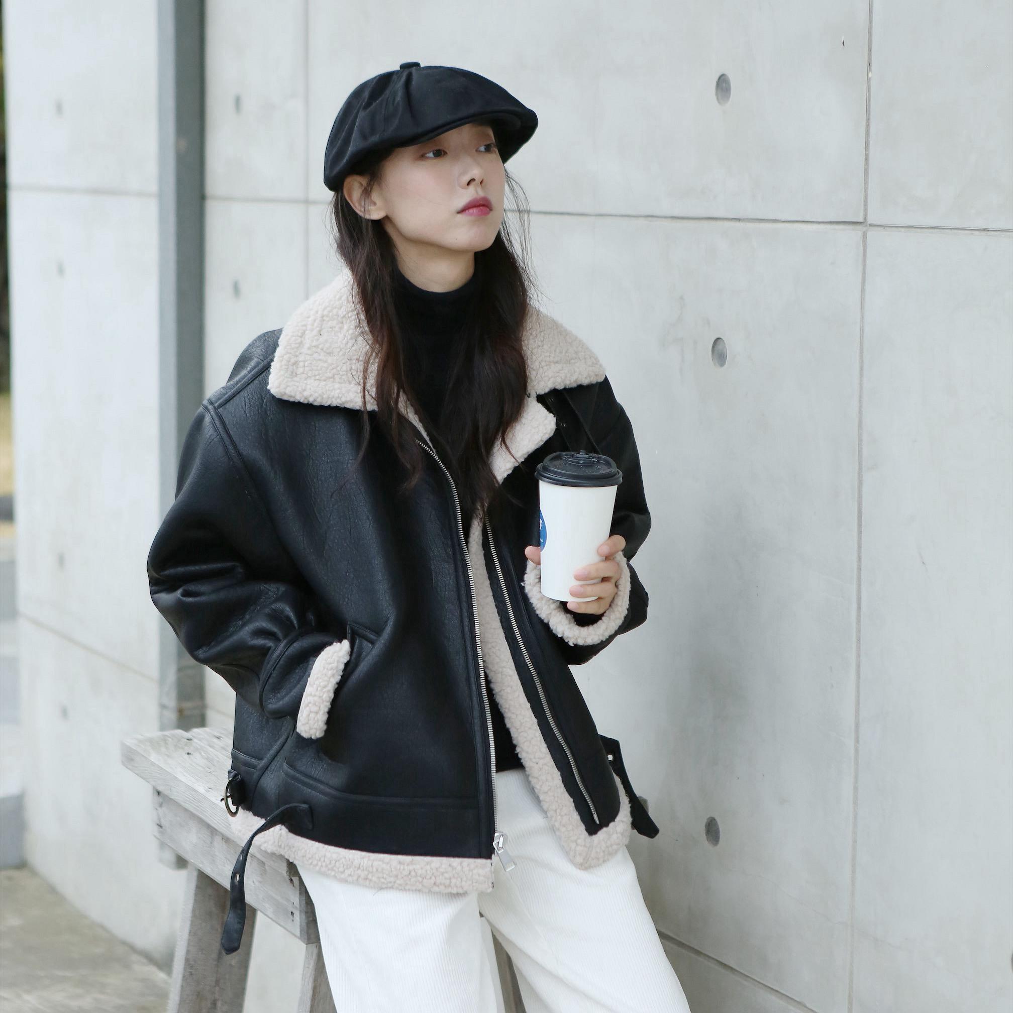 Maje moscoloni lambswool jacket women's short section 2022 winter new leather jacket thickened fur jacket
